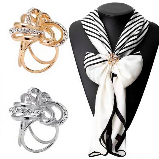 Elegant Scarf Ring Design: This simple yet gorgeous alloy scarf ring adds a touch of shininess with rhinestones, making your scarves stand out and drawing compliments effortlessly.