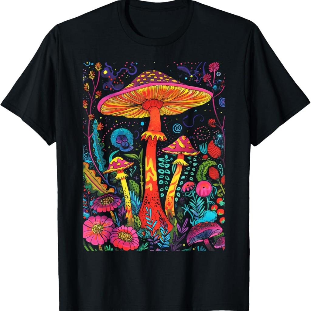Trippy Trip Pilz Psychedelische Kunst Blumenrand T-Shirt(2)