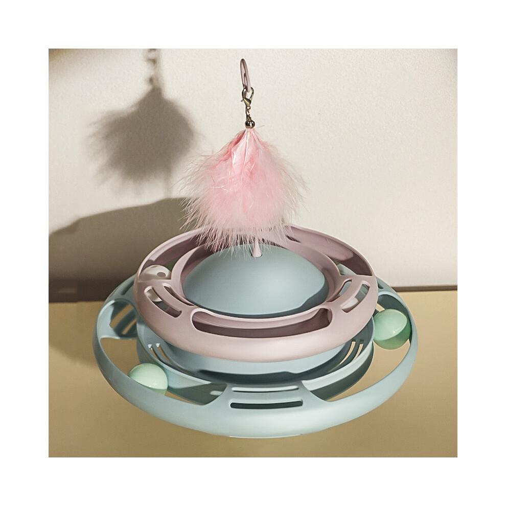 Langsamfresser Katzenspielzeug mit rotierenden Bällen und interaktivem Federstab, 3-in-1 kreisförmiges Drehteller-Design für Gewichtsmanagement und Selbstunterhaltung, S