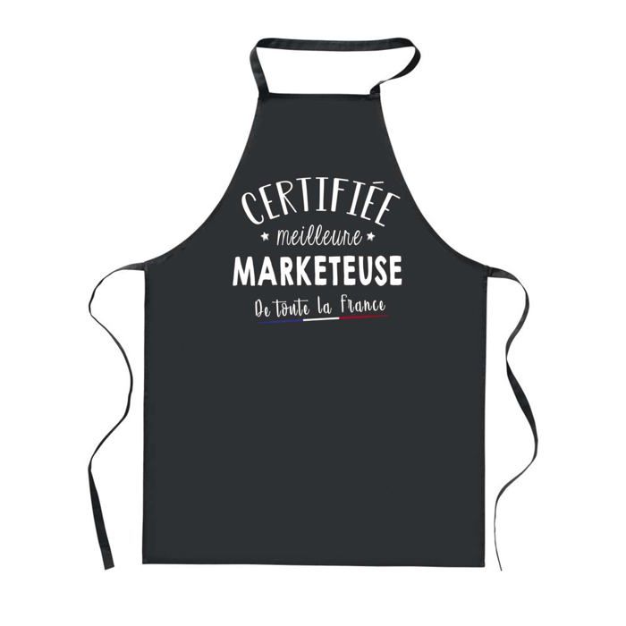Planetee Tablier de Cuisine Noir Certifiée meilleure Marketeuse – Cadeau Femme, Barbecue, Jardinage, Tâches ménagères