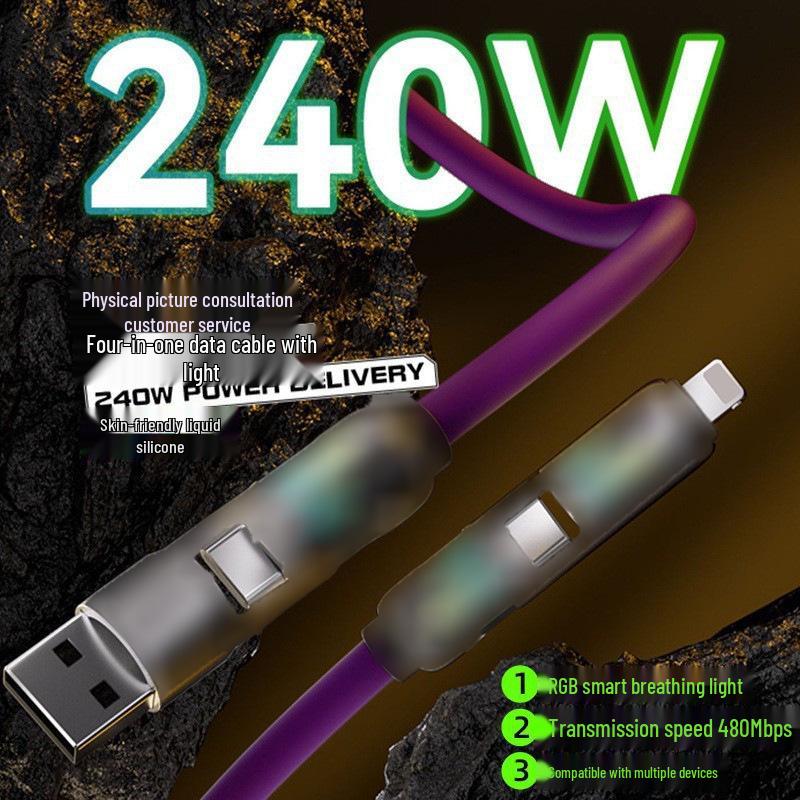 240W 4-in-1 Wireless Phone Charging Cable Compatible with Apple, Featuring Colorful LED Lights