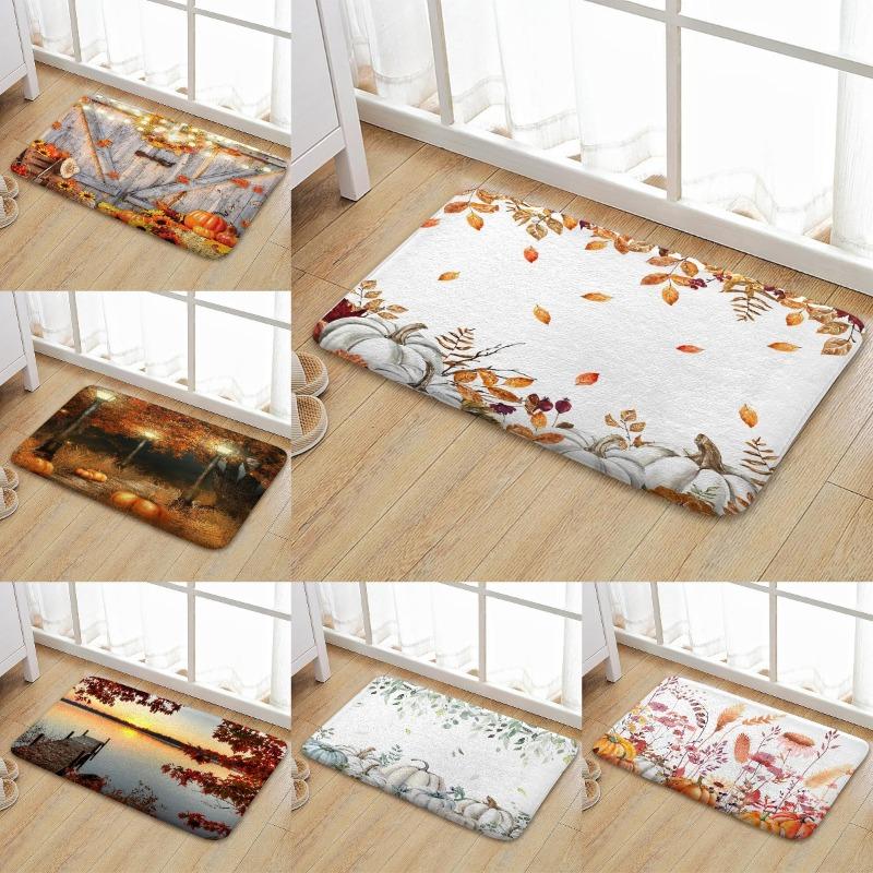 Fall Pumpkins Maple Leaf Autumn Harvest Thanksgiving Carpet Mat Rug Non Slip Home Decor for Bathroom Bedroom Kitchen Bathtub