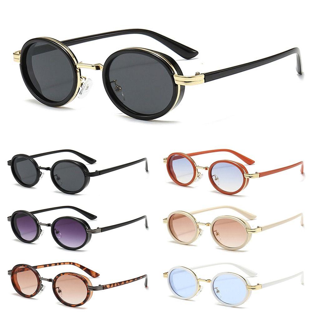 Trendy Metal Frame Oval Sunglasses Hip-Hop UV400 Punk Shades Small Frame Sun Glasses for Women Men