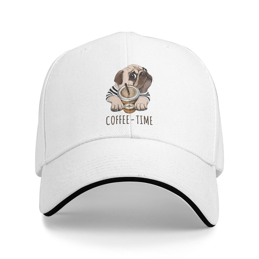 Individuelle Klassische Unisex Kaffeezeit Mops Hund Baseballkappe Erwachsene Verstellbare Dad Hat Unisex WoUnisex Outdoor Snapback Hüte