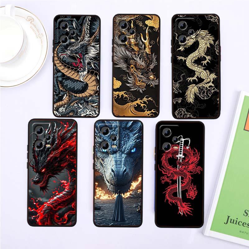 Fashion Dragon Illustration Phone Case For Xiaomi Redmi Note 15 14 13 12 12S 11E 11 11S Pro Plus 4G 5G Black Soft TPU