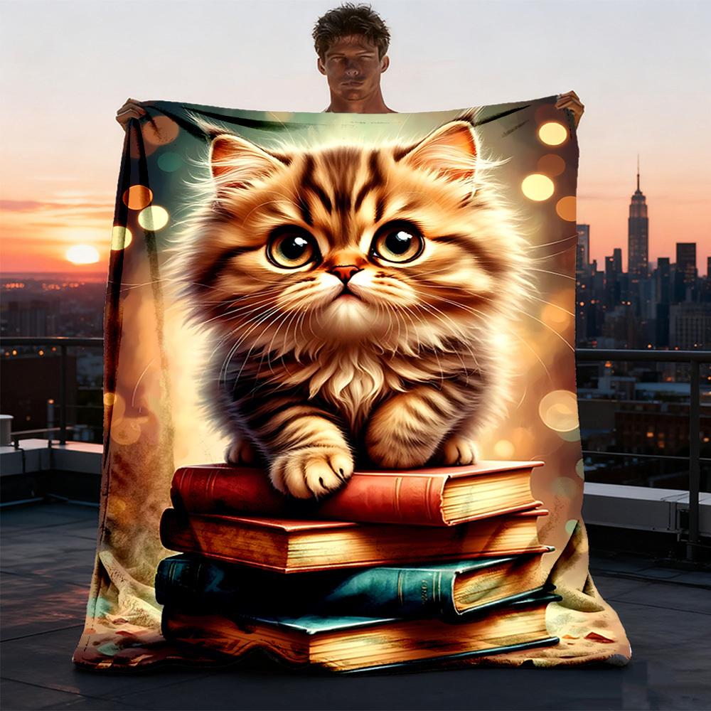 1 Stück Katze Bücher Outdoor-Decke - Weiches Flanell Gemütlich für Reisen & Camping - Ganzjahres Warme Bettdecke, Maschinenwaschbar yy251229103