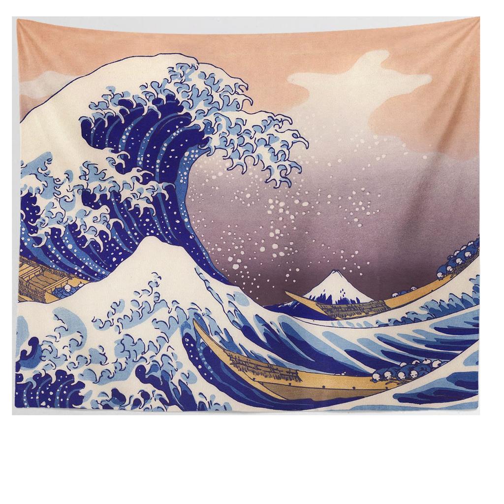 Ikosaeder Große Welle Wandteppich Flach Gedruckt Kanagawa Welle Meeres-Thema Wandkunst mit Verriegeltem Rand für Schlafzimmer Studentenwohnheim
