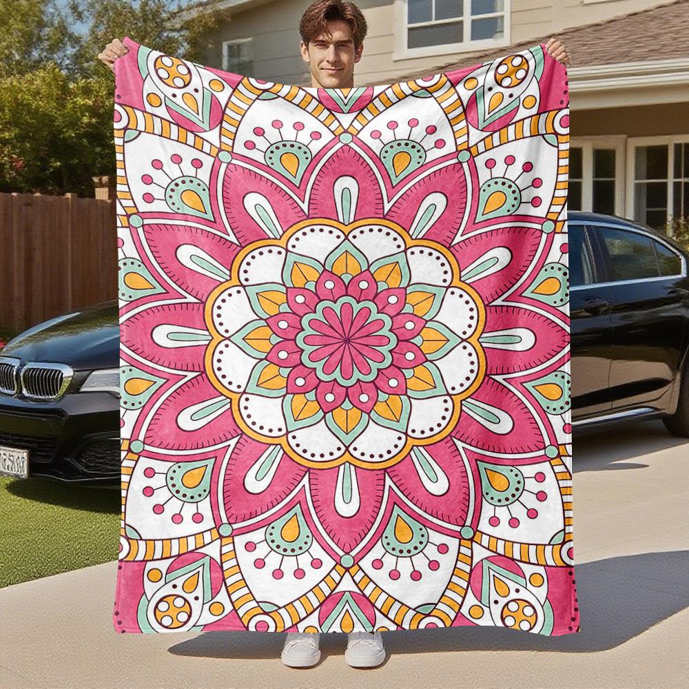 1pc Mandala Pattern Outdoor Flannel Blanket Soft Warm All-Season Throw for Sofa Bed Car Camping Office, Cozy Gift Idea1290S
