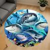 3D Unterwasserwelt Runder Teppich Gebrochener Boden Design mit Haifisch Druck Rutschfest Langlebiger Teppich, Atemberaubender Visueller Effekt Mode