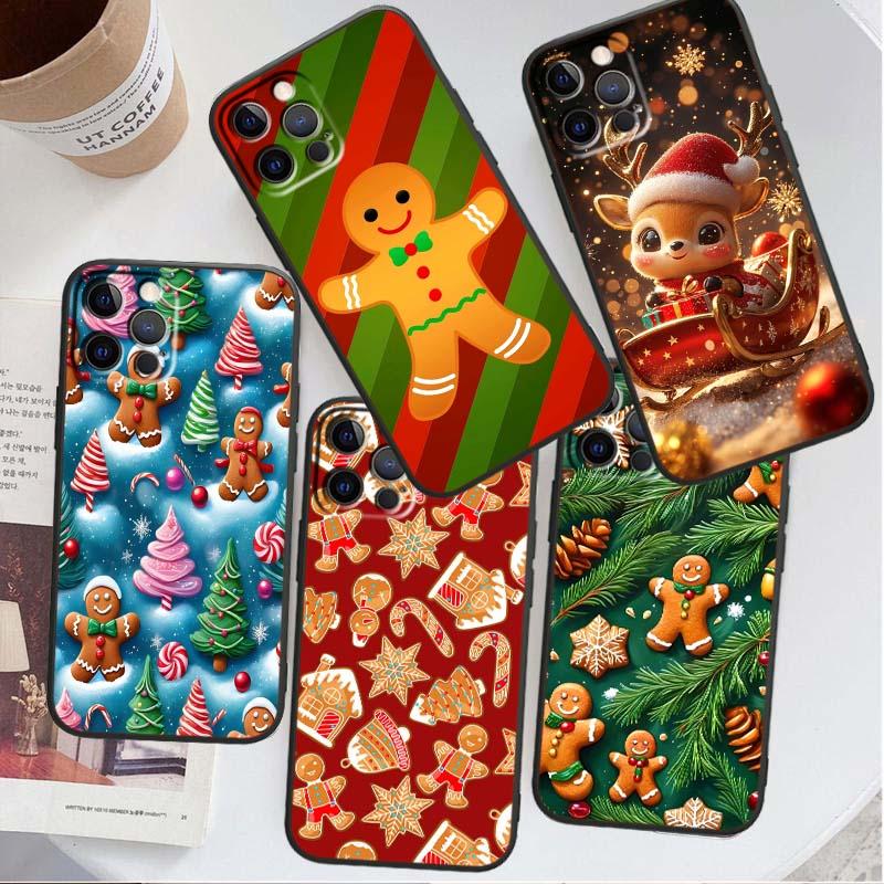 Weihnachts-Cartoon-Muster Handyhülle für Apple iPhone 17 16 16E 15 14 13 12 11 Pro Max Plus Schwarzes Weiches Silikon