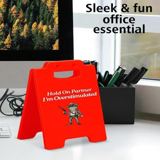 Perfekt zum Verschenken an einen Kollegen, diese Tischplakette wird mit dem Bonus-Spruch „Warte mal Partner, ich bin überstimuliert“ für zusätzlichen Spaß geliefert.. Bringen Sie mit diesem aussagekräftigen Schild, das das Gefühl der Überstimulation auf spielerische Weise einfängt, etwas Bürohumor in Ihren Alltag..