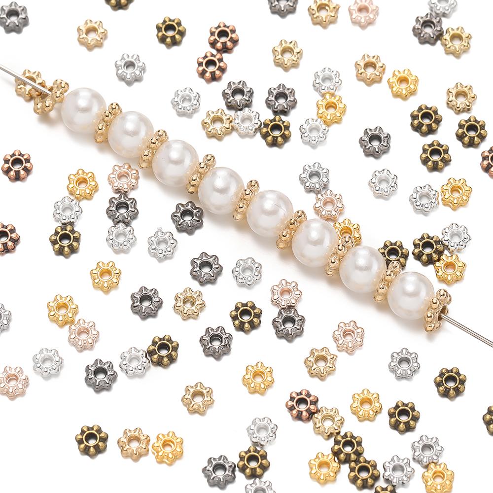 200 Stück 4/6mm Legierung Schneeflocken Perlen Blumen Abstandshalter Lose Perlen für DIY Armband Halskette Schmuckherstellung Zubehör Zubehör