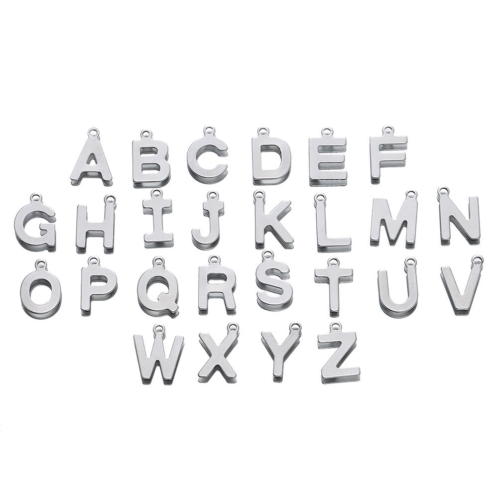 50 Stück Edelstahl 12mm Englische Buchstaben A-Z Anhänger für DIY Halsketten Schmuckherstellung Zubehör