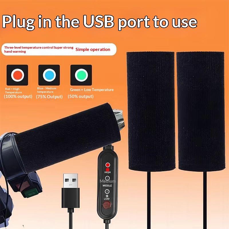 1 Set Schnelles Aufheizen Nicht-Zerstörende Aufklebbare Montage Wärmer Moto USB Beheizte Lenkergriffe 3-stufige Temperaturregelung