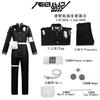 Das zweite Design ist auf männliche Charaktere zugeschnitten und repliziert perfekt die ikonische männliche Kriegsuniform der Serie.. Die Kollektion bietet zwei unterschiedliche Varianten: ein kurzes Jacken- und Hosen-Set und ein langer Mantel- und Hosen-Set, beide zentriert auf die gleiche schwarz-weiße militärische Ästhetik. Das kurze Jacken-Set beinhaltet ein strukturiertes schwarzes Hemd mit Knöpfen und weißer Paspelierung entlang des Kragens und der Manschetten, verziert mit knopfartigen Elementen in Goldton und silbernen Stern-Emblemen, kombiniert mit einer Hose aus schwarzem taktischem Stoff mit hoher Taille.. Das lange Mantelsortiment umfasst einen passenden schwarzen Langmantel mit weißen vertikalen Akzentpaneelen, goldenen Knöpfen und silbernen Emblemen, der in einem entspannten, sportlichen Schnitt gestaltet ist, der für männliche Körpertypen geeignet ist. Beide Outfits sind mit einem breiten weißen Gürtel in der Taille gerafft und mit weißen Armbanddetails versehen, was die ikonische militärische Silhouette vervollständigt, die dem Aussehen der Charaktere auf dem Bildschirm entspricht.