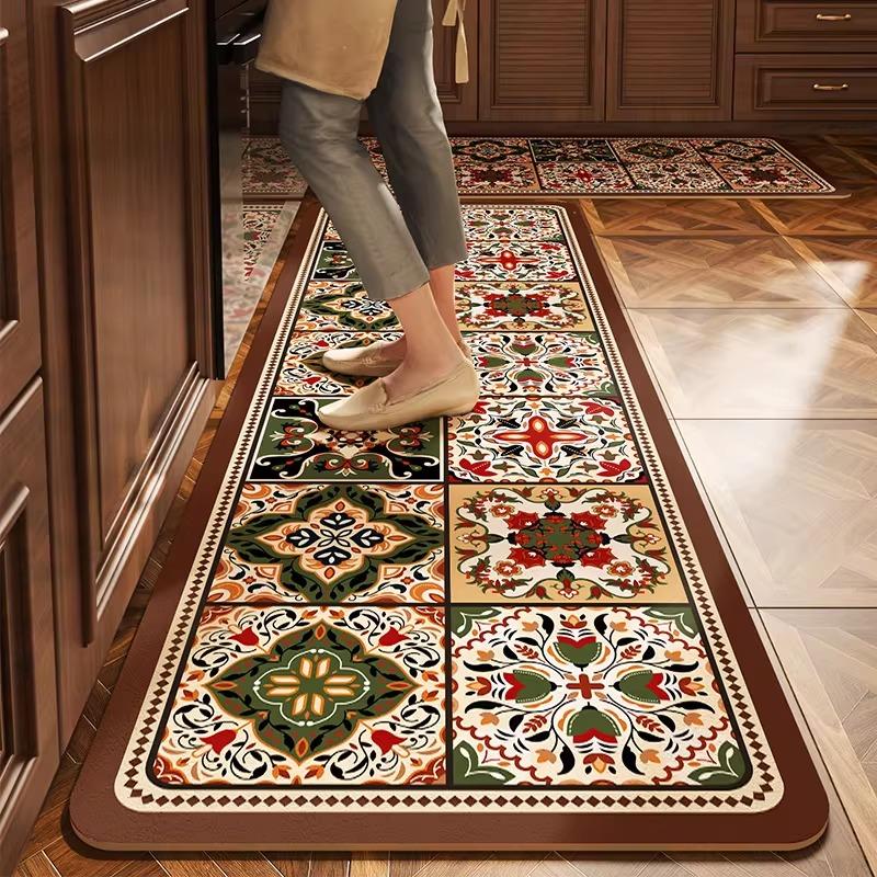 The floor mat you are looking at now is professionally used in the kitchen. Its fabric is leather PVC. Its main feature is waterproof, oil-proof and non-slip. At the same time, its soft and resilient fabric can also protect the tableware from being broken due to falling.