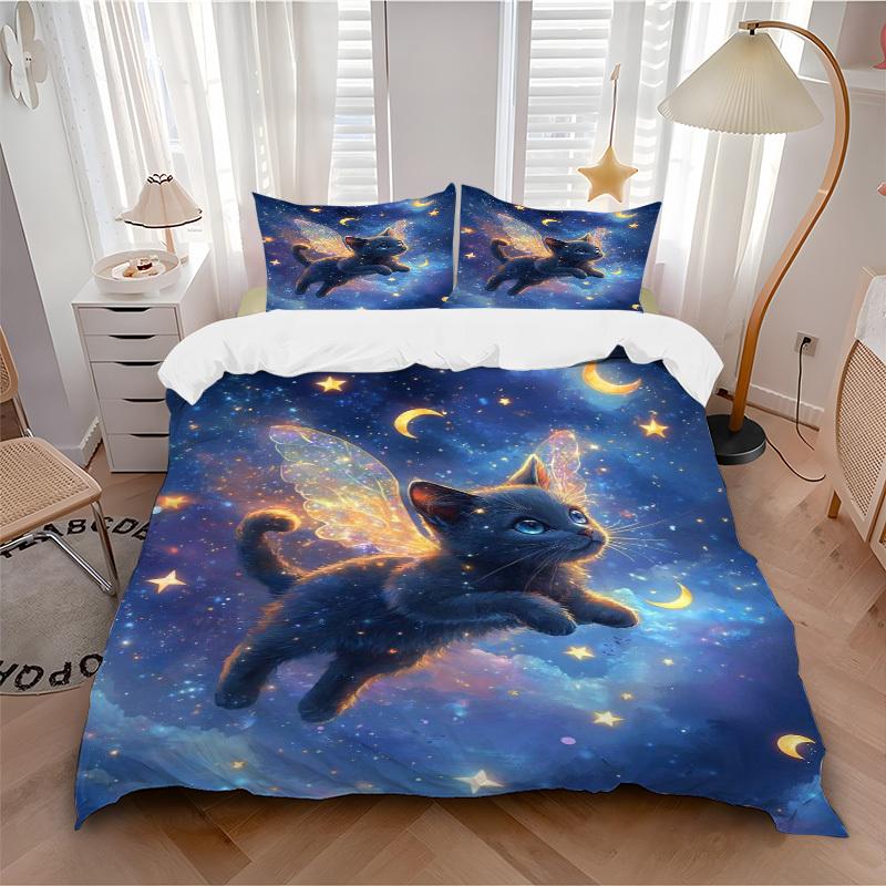 3pcs Anime Fairy Cat Bedding Set - Includes One Quilt Cover and Two Pillowcases (No Core) - Home Decor Gift for Bedroom and Guest Room Decor