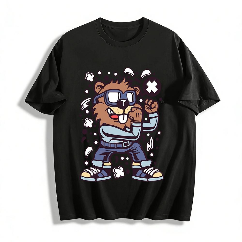 Mürrischer Biber Aufdruck Lässiges T-Shirt Trendige Streetwear Für Männer Und Frauen Reines Baumwoll-T-Shirt