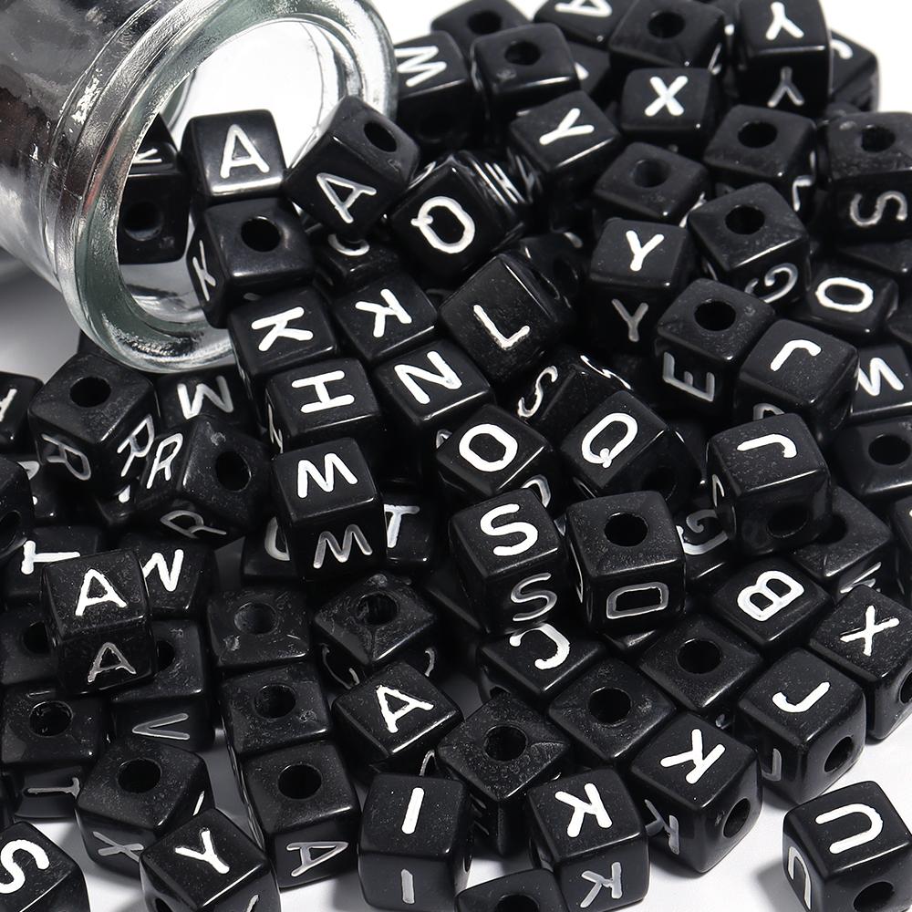 50pcs/lot Black Acrylic Alphabet Beads Square A-Z Letter Loose Spacer Beads for Jewelry Making DIY Bracelet Handmade Supplies