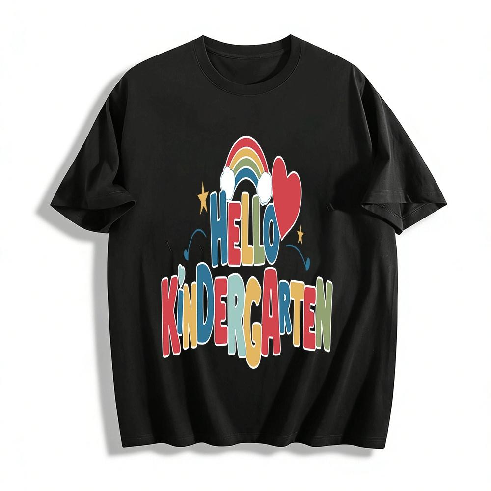 Hallo Kindergarten Bunter Aufdruck Kinder Freizeit T-Shirt Für Neue Schüler Reines Baumwoll-T-Shirt