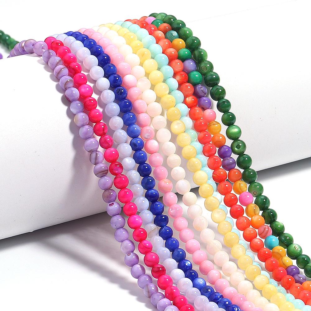 1 String 4mm Natural Shell Round Beads Colorful Loose Spacer Ball Beads For DIY Exquisite Bracelet Necklace Jewelry Supplies