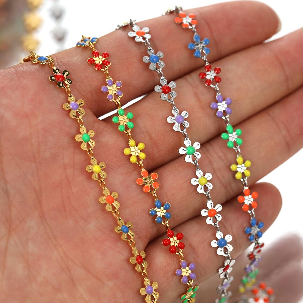 1M Goldfarbe Bunte Kette Edelstahl Emaille Blumenketten für DIY Schmuckherstellung Fußkettchen Armband Halsketten Zubehör