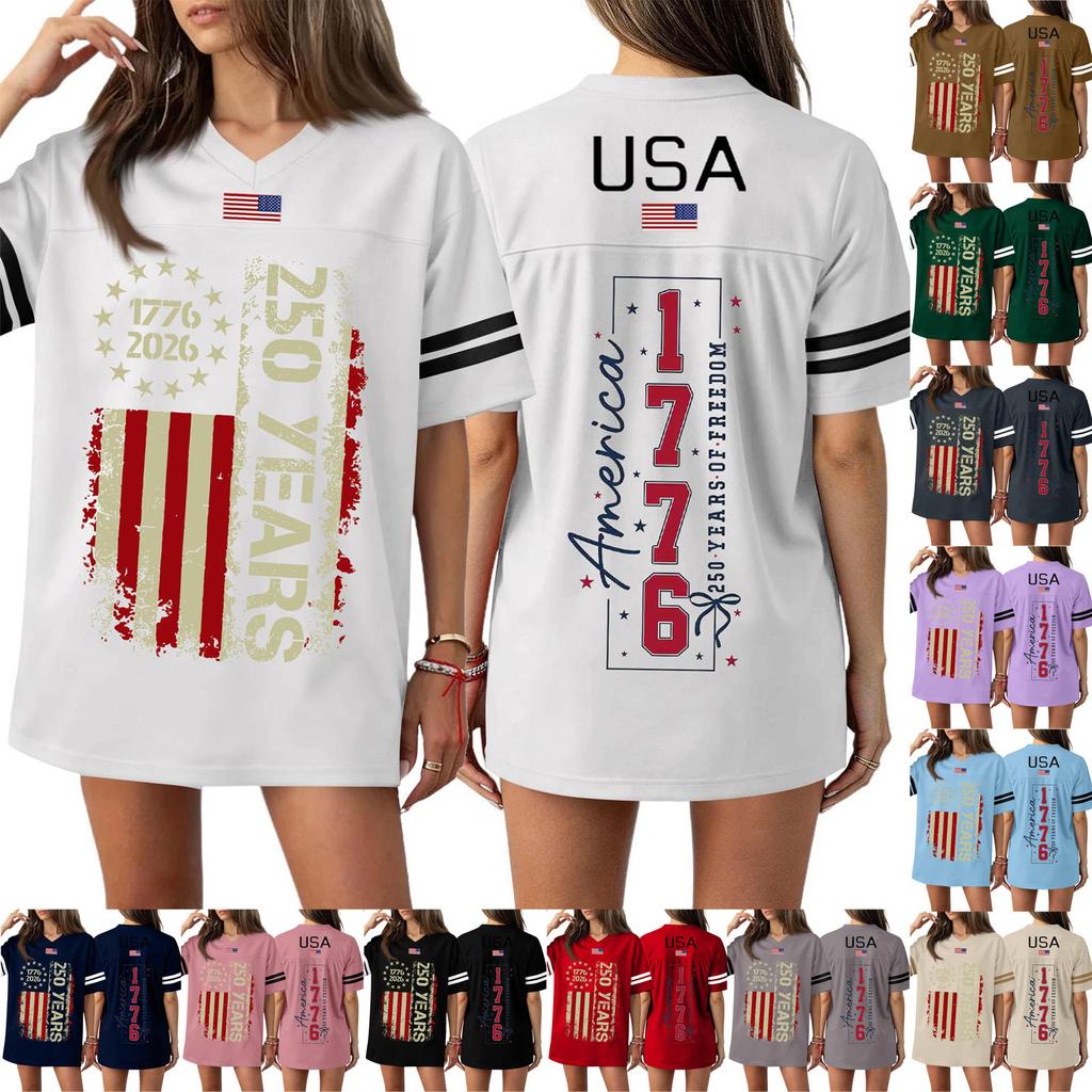 Damen Casual Mode V-Ausschnitt Sport Unabhängigkeitstag Druck Kurzarm Sport T-Shirt Top