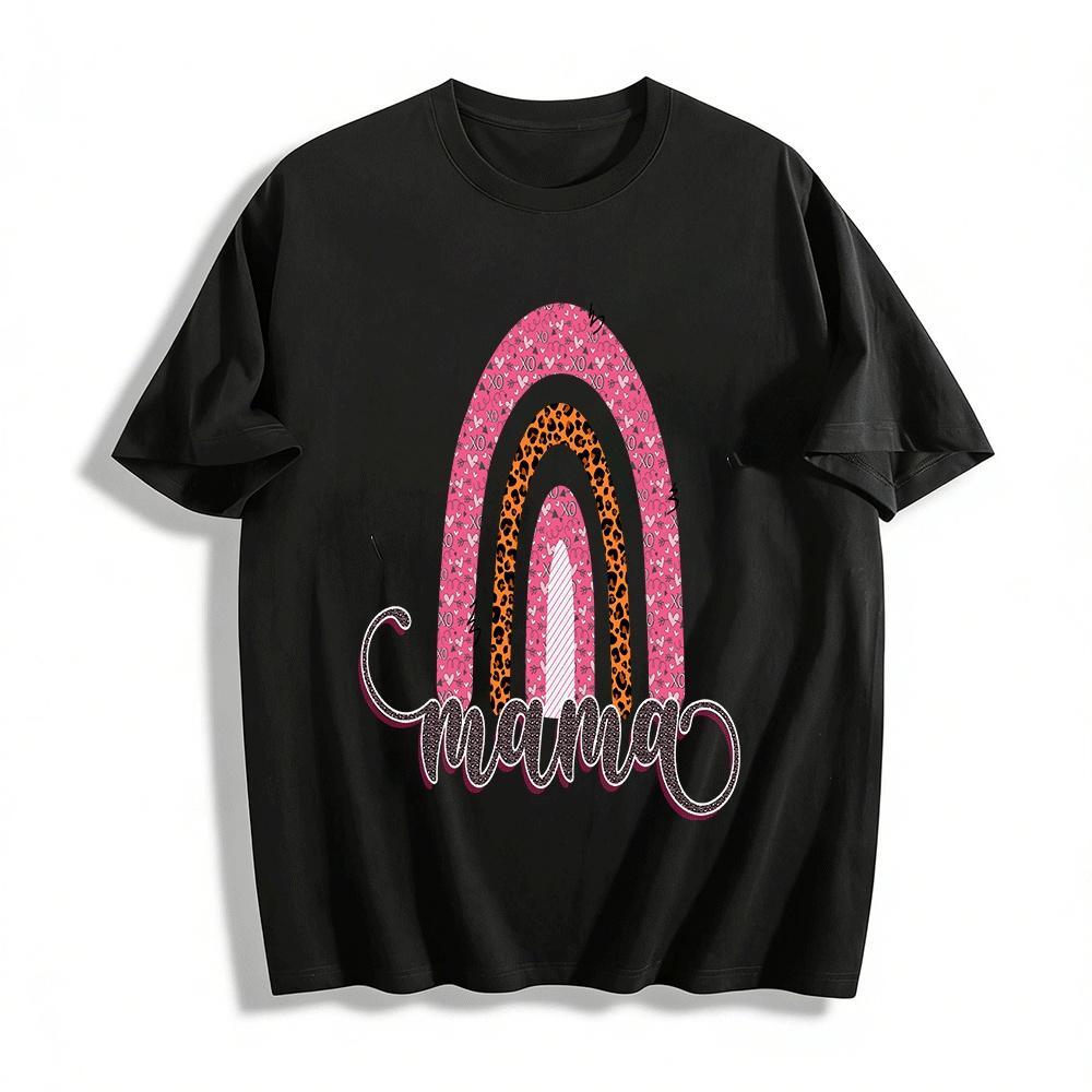 Herz Leopardendruck Regenbogen Mama Grafik Lässiges Oberteil Reines Baumwoll-T-Shirt