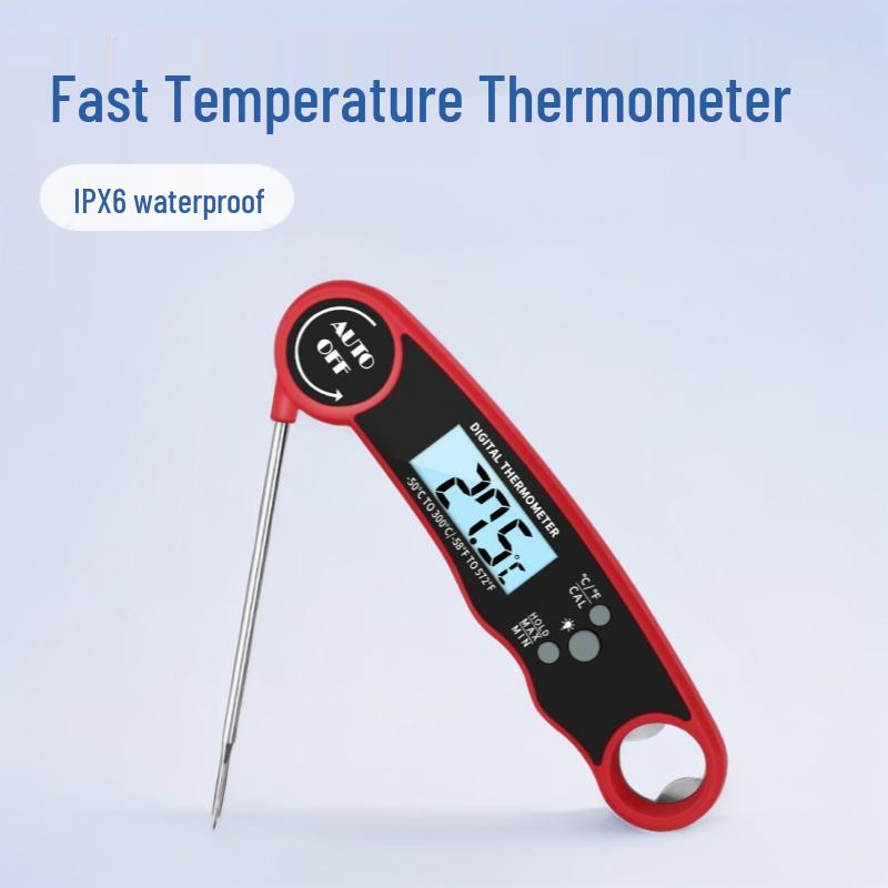 Hochpräzises digitales Fleischthermometer mit Temperatur- und Feuchtigkeitssensor, klappbare Sonde, hitzebeständig für Küche & Haushalt