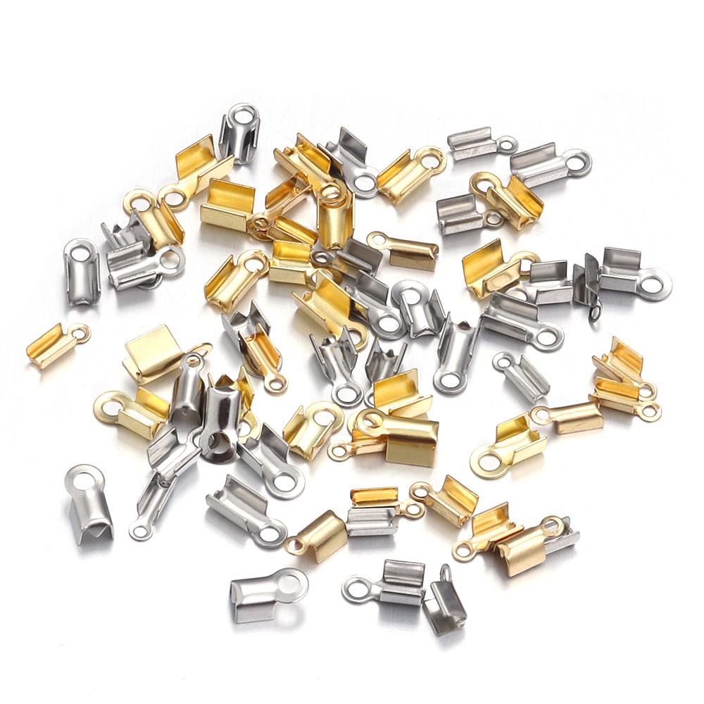 30-60 Stück/Los Gold Edelstahl Schnüre Quetsch-Endkappen Perlenkappen Lederclip-Spitzen Falten-Quetsch-Armbandverbinder Für Schmuckherstellung