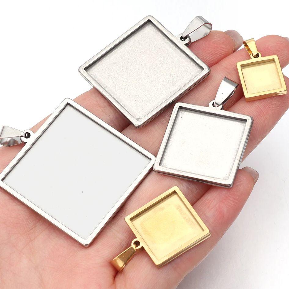 2 Stück/Los 10 15 20 25 30 mm Dicke Quadratische Edelstahl Cabochon-Fassungen Leere Fassungen Für Anhänger Schale DIY Halskette