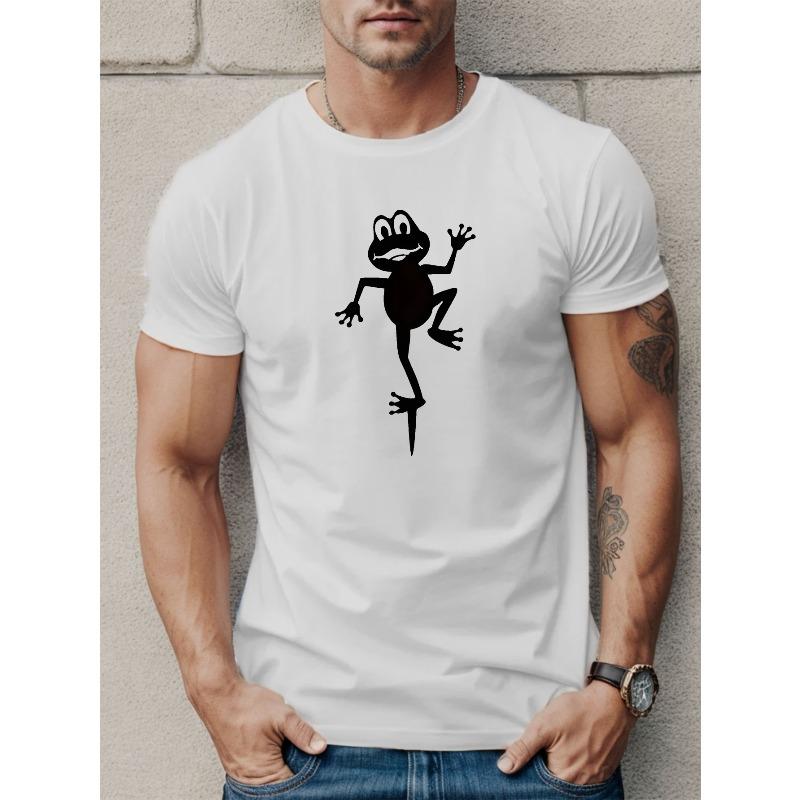 Herren Süße Froschdruck Kurzarm T-Shirts, Bequeme Lässige Elastische Rundhals Oberteile Für Herren Outdoor-Aktivitäten