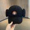 Letter Design Faux Sheep Wool Baseball Hat With Adjustable Fit For Winter Outdoor Activities