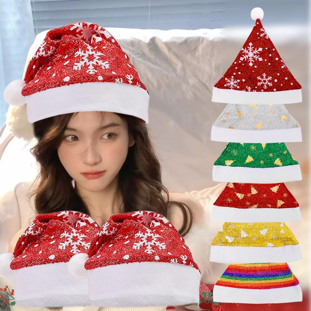 Snowflake Santa Hat Shiny Colorful Xmas Cap Christmas Hat Unisex Holiday Party Headwear For Stage Performance New Year Party
