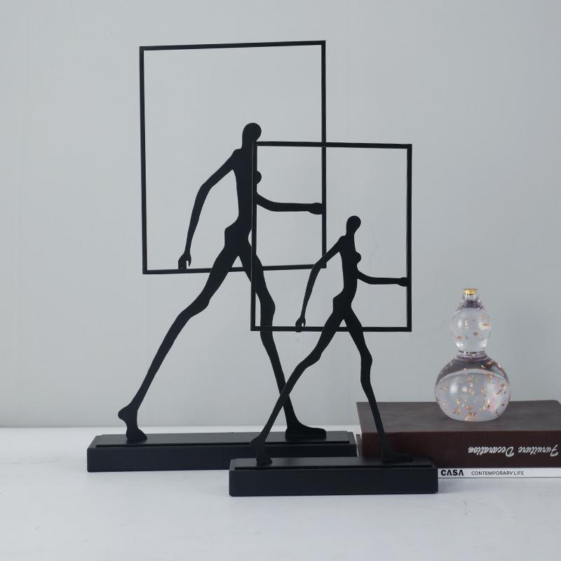 Home Decor Statues Metal Handicraft Abstract Wrought Iron Figures Square Frame Walking People Portrait Cropping Figurines Decor