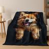 3D Illusion durchbrechende Wand Hund Welpe Niedliche Flanelldecke, Gemütliche Weiche Überwurfdecke für Zuhause Schlafzimmer Bett Sofa Picknick Abdeckung Geschenk Kind