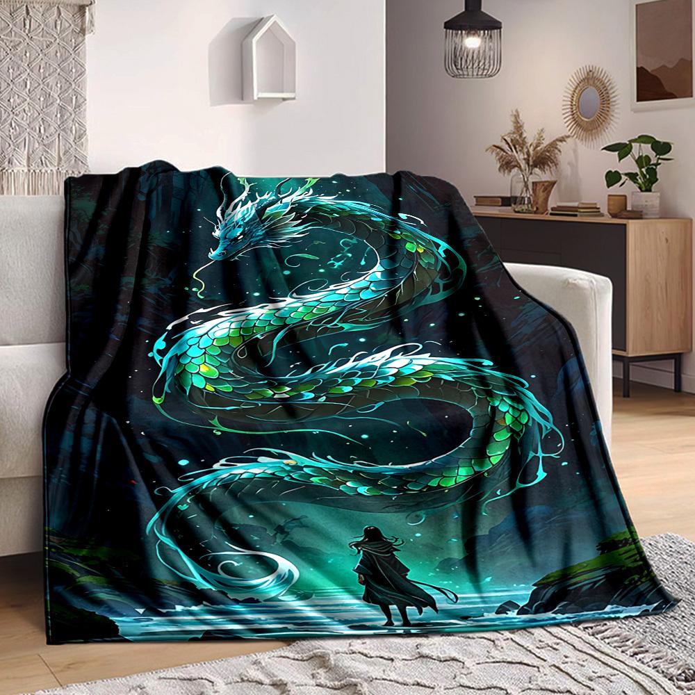 1 Stück leichte Flanelldecke mit Drachenmotiv, bequeme und warme Decke, für Büro, Camping, Sofa, Bett, Wohnzimmer087