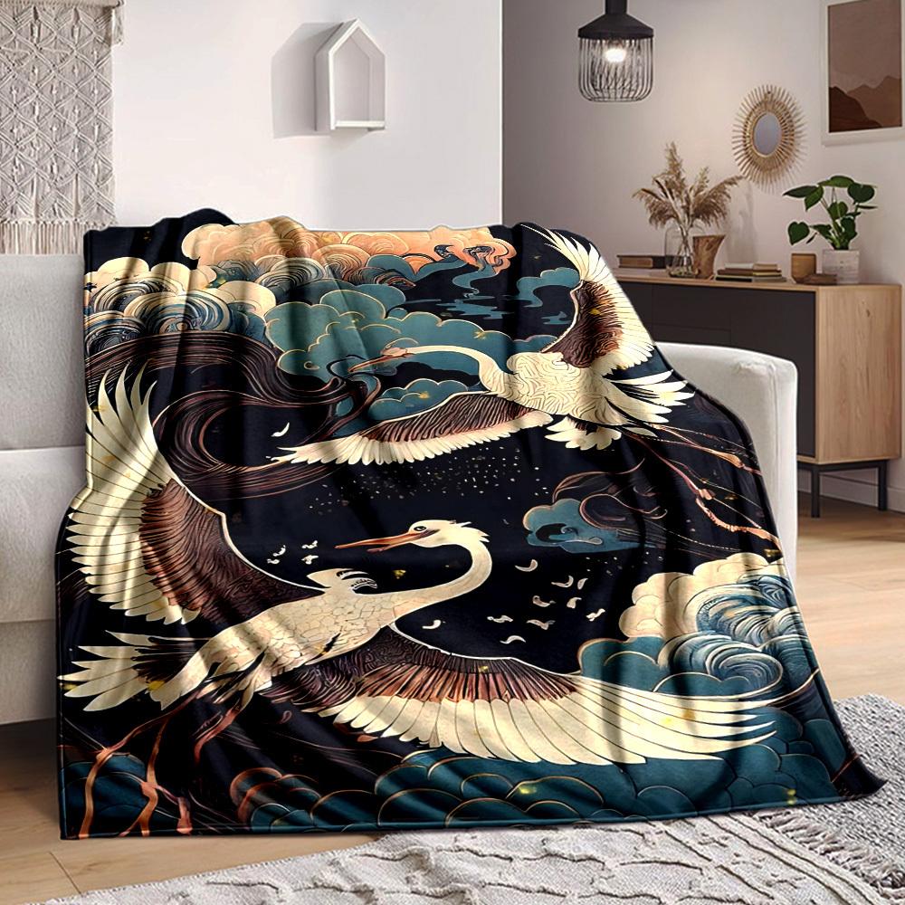 1 Stück Kraniche Wolken Leichte Flanelldecke, Bequeme und Warme Decke, für Büro und Camping Schlafsofa, Wohnzimmer061
