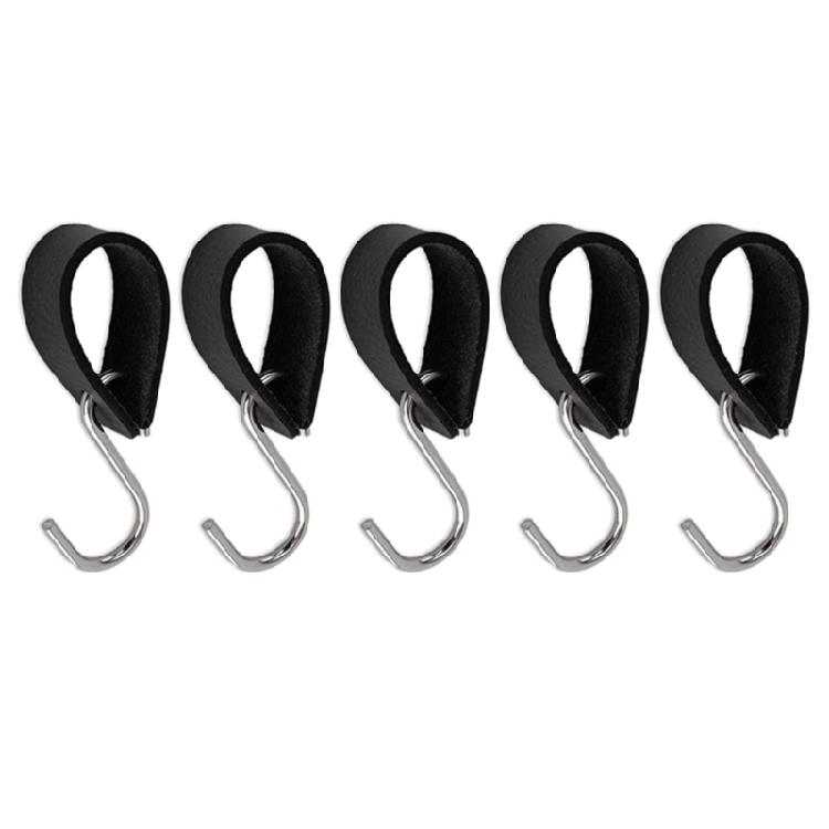 5 Stück S-Form PU-Leder Kleiderbügel Hängender Riemenhalter Aufbewahrungshaken Tragbarer Outdoor-Camping-Aufhängehaken Einfach zu bedienen
