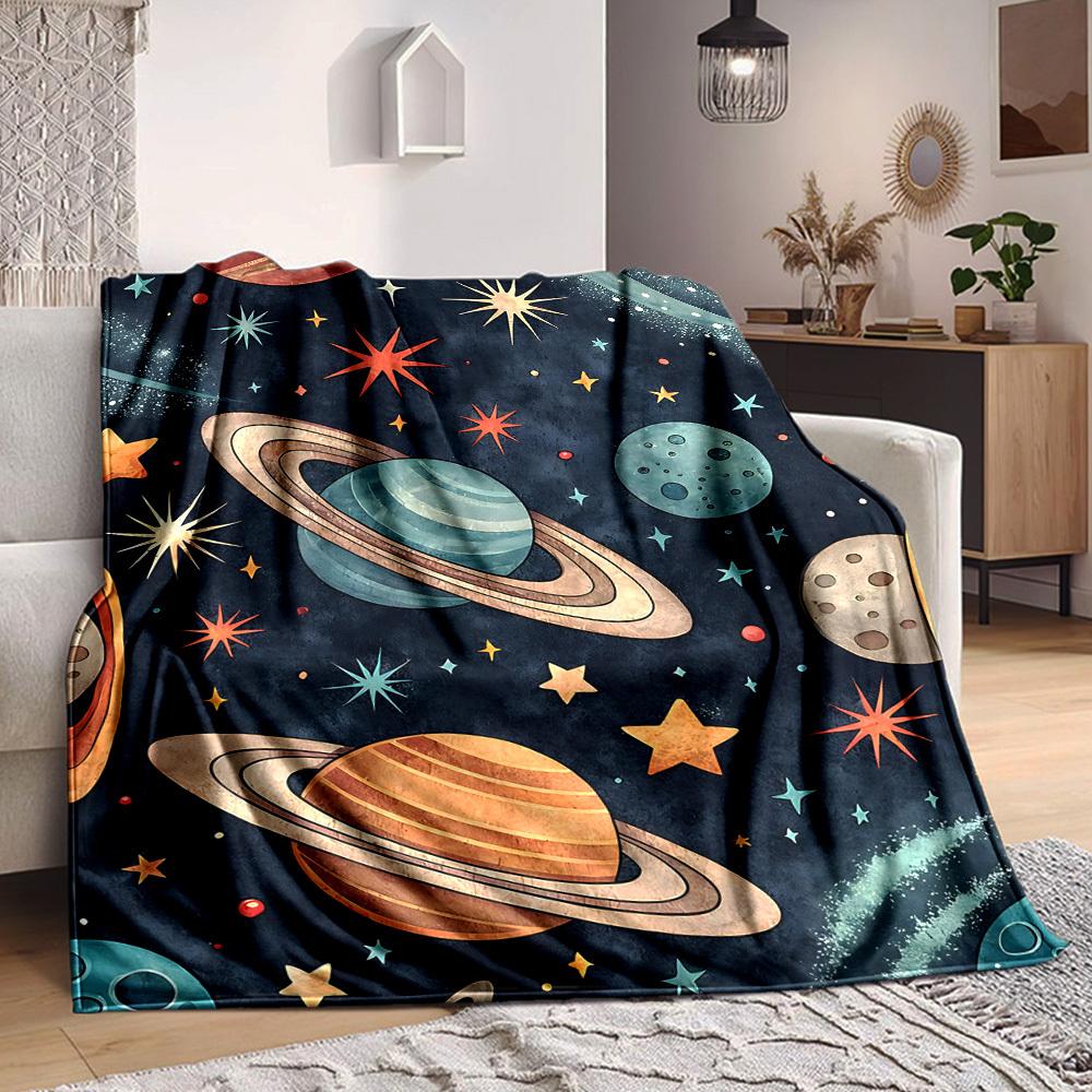1pc Galaxy Planets Blanket, Lightweight Flannel Throw Blanket for Sofa, Bed, Travel, Camping, Living Room, Office, Couch086