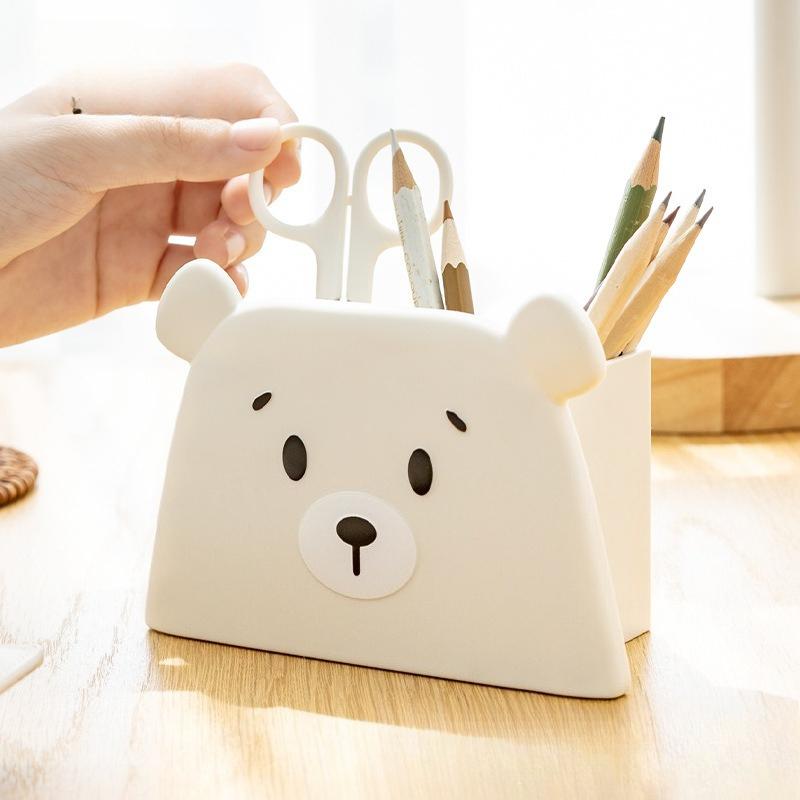 Free Bear Cute Pen Holder, Simple Gift Storage Creative Plastic Stationery