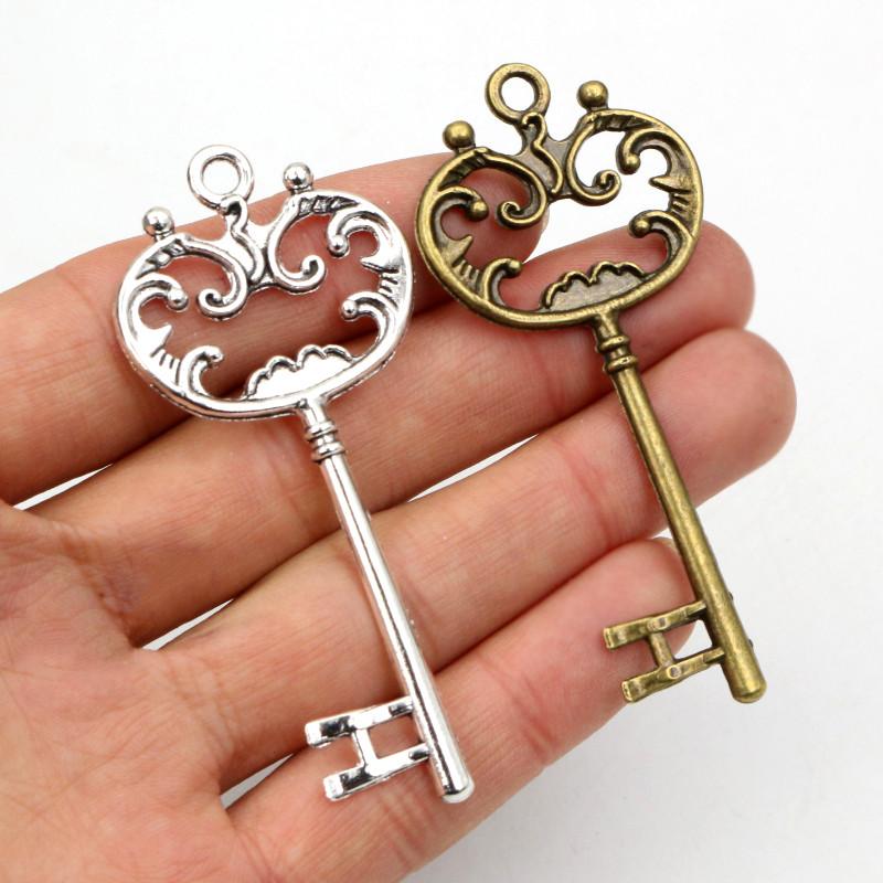 5 Stück Anhänger Vintage Süßer Schlüssel 68x30mm Antik Silberfarbe Bronze Beschichtet Anhänger Herstellung