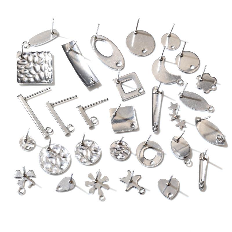 20pcs 316L Stainless Steel Geometric Earring Stud Earring Posts Connector Fashion Styles DIY Jewelry Making Findings Accessories
