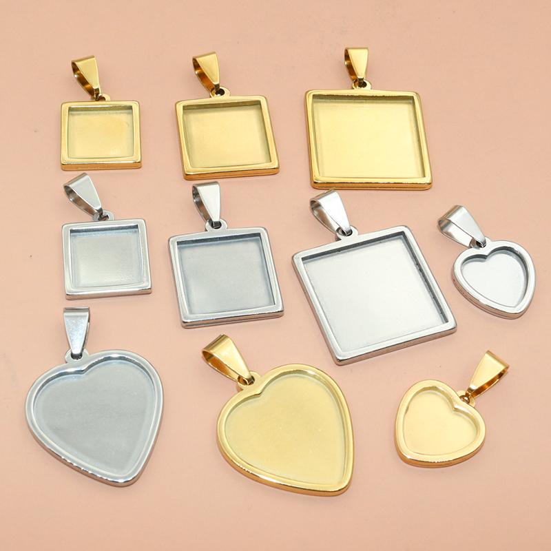 5pcs 10-25mm Inner Size Stainless Steel Square Pendant Cabochon Blank Base Bezel Tray Setting DIY Jewelry Making Accessories