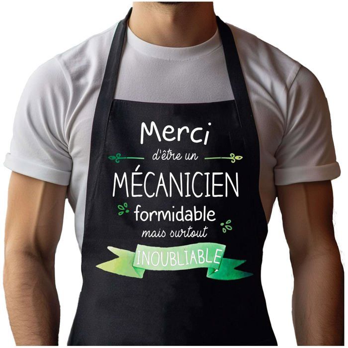 Tablier de cuisine - Merci Mécanicien Inoubliable Homme - Noir - Coton résistant - Impression française