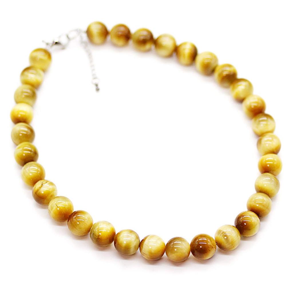 [Ishiki] 4A Natural Stone Golden Tiger Eye Prayer Bead Necklace 12mm - A power stone that attracts wealth and career success! [n168]