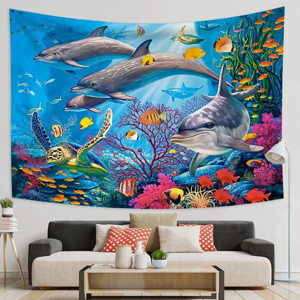 Ozean Delfin Wandteppich Wandbehang Lustiger Meeresleben Wandteppich Wandbehang Schlafzimmer Wale Delfin Wandteppich Wohnzimmer Dekor
