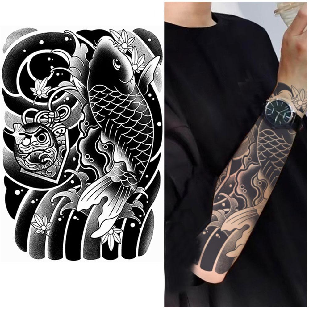 NEW 2026 Semi-permanent Temporary Tattoo Sticker Traditional Japanese Koi Fish & Blossom Waterproof Fake Tattoo for Men Arm