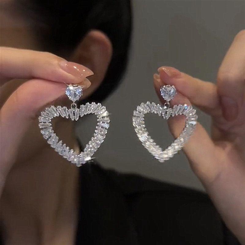 Needle Fashion Zircon with Diamond Love Heart Earrings High-Key Dignified Eardrops Internet Celebrity Easiest for Match Fashion Generous Earrings