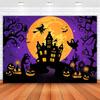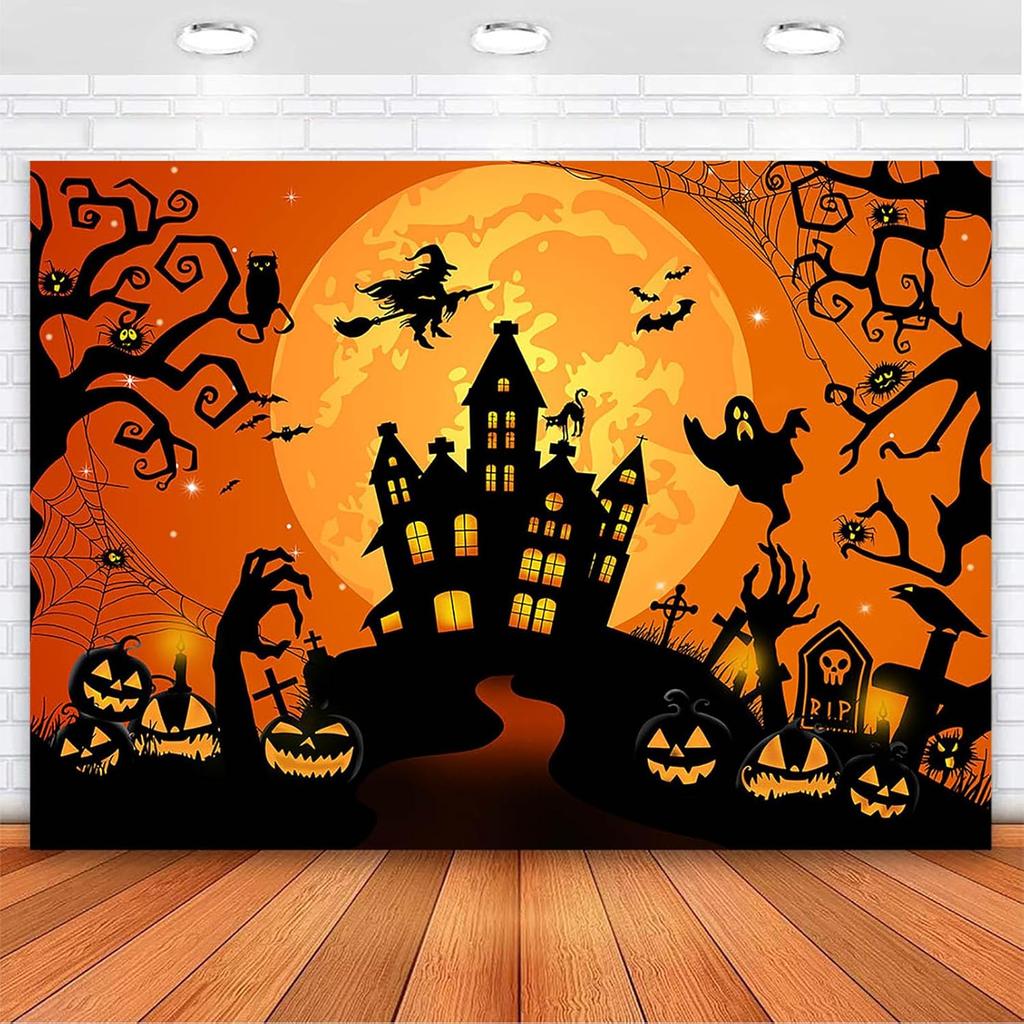 Avezano Halloween Backdrop Horror Moon Night Halloween Backgrounds for Parties Haunted Castle Scary Party Decoration, Orange 7 x